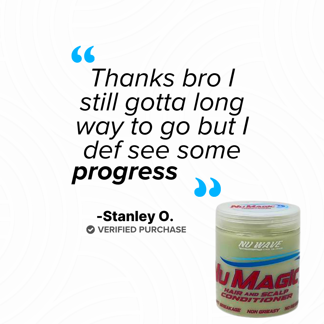 When used as a leave-on, Nu Magic Conditioner focuses more on hydrating and repairing hair, providing a light, non-greasy finish that is different from Tsunami Cream Moisturizer, which is primarily for deep hydration and repair. Unlike the Rapid Wave Pomade, which is used for styling and holding hair in place, Nu Magic provides conditioning benefits without the strong hold, making it suitable for more natural styling and daily wear.