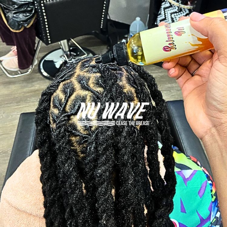 Use Nu Wave Era’s shampoo bar and conditioner. Apply the growth oil and Tsunami Moisturizer afterward for overnight moisture.