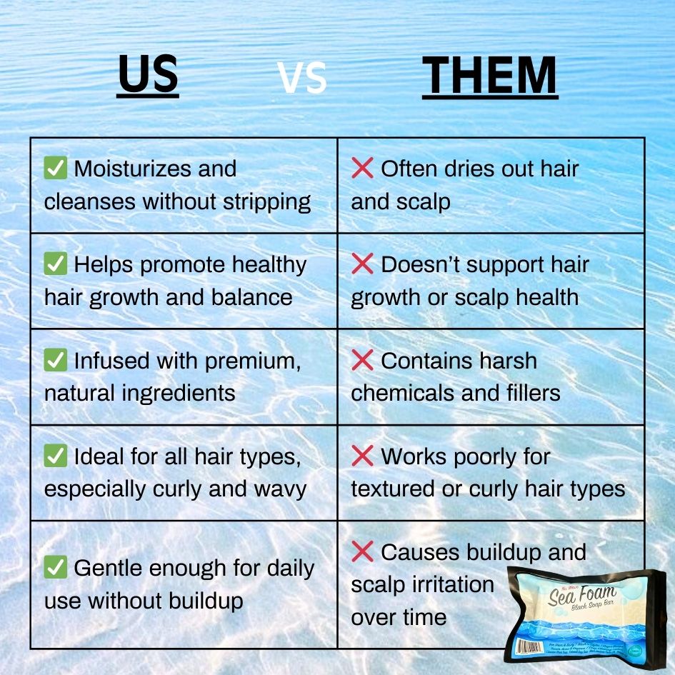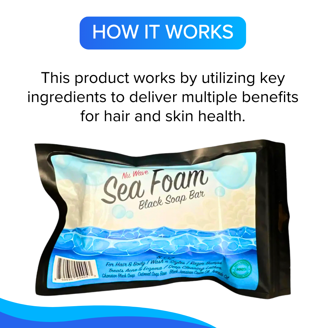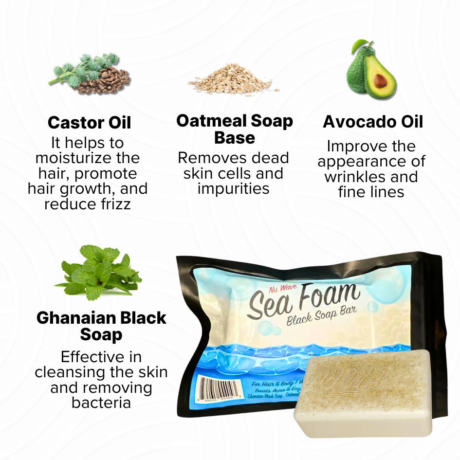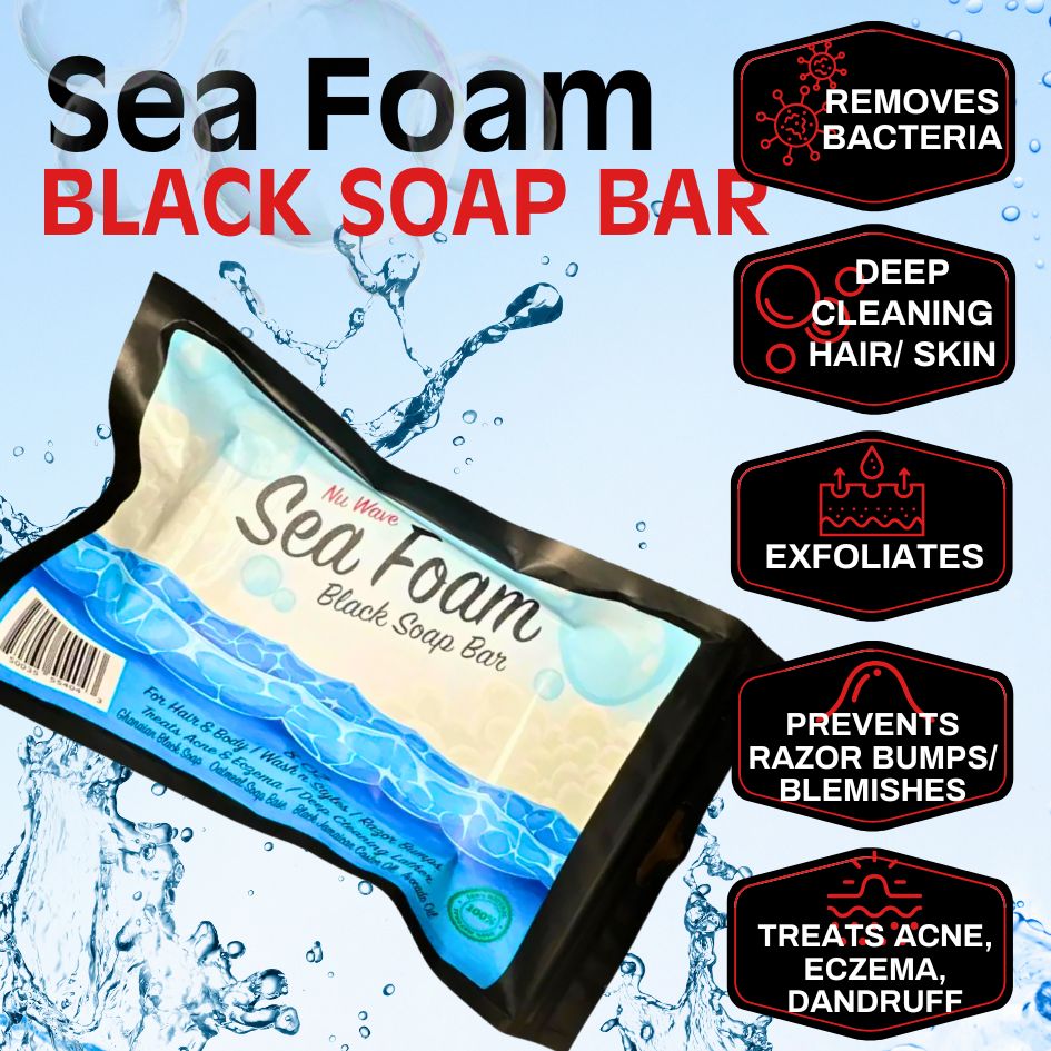 Sea Foam Black Soap Bars are a lavish blend of African Black Soap imported from Ghana along with premium oils. The high quality ingredients used to make this luxurious bar with leave your hair and body squeaky clean. Use this bar for Wash n Styles to wash out thoroughly wash out hair products, dirt and makeup.
