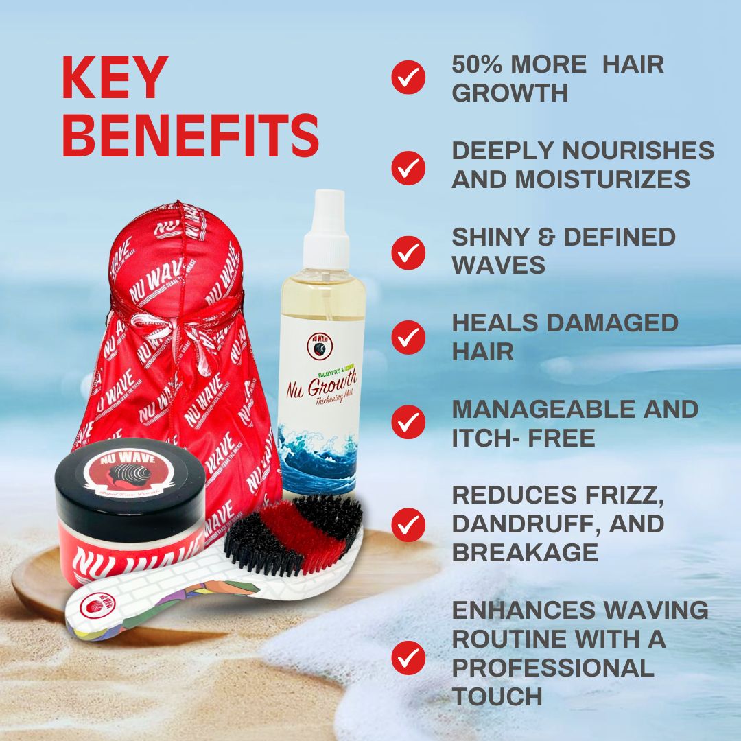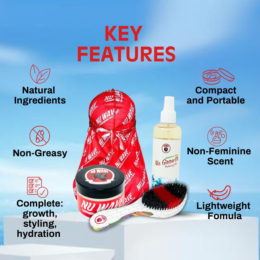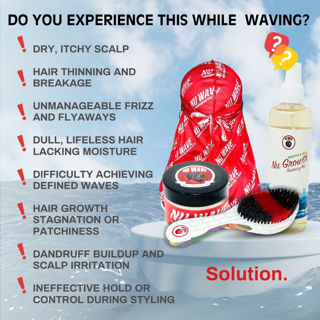 The Power Pack is everything a waver needs in his waving journey. A medium hard brush, a durag, a pomade, and a thickening oil for faster hair growth thus faster 360 waves.